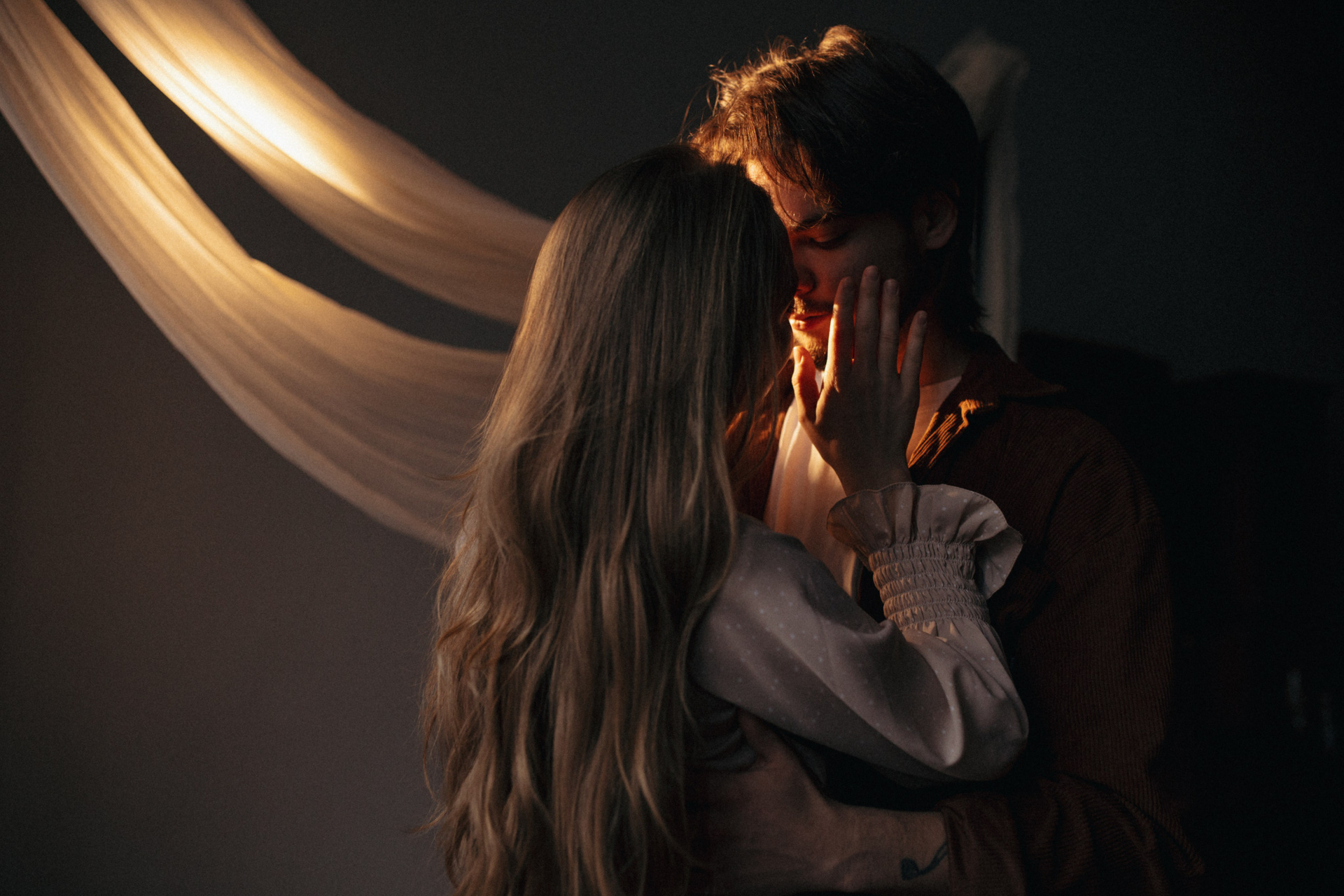 Чтобы сделать парную съемку живой и эмоциональной важно минимизировать количество статических поз в пользу активного взаимодействия — можно попросить пару покружиться, потанцевать вместе, погладить рукой по лицо и др.